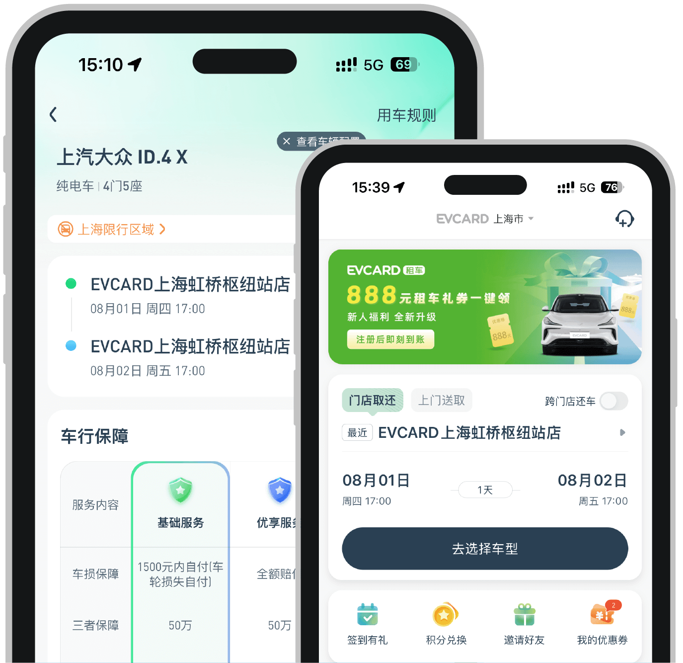 APP:可在手機(jī)應(yīng)用市場(chǎng)搜索下載“EVCARD租車(chē)”APP進(jìn)行預(yù)定。